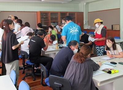 夏休み中に、地域の方々と学校職員と一緒に、研修したり活動したりしました。