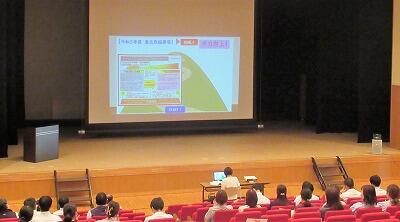 学校で一番大切にしている「安心・安全な学校生活」という意味から保健面での説明をさせていただきました。説明は本校養護教諭です。