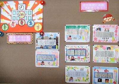 玄関を入って、事務室入り口の横に「たか・ザ・キッズの活躍コーナー」があります。様々なコンクール等で入賞するなどした子供たちの活躍を紹介するコーナーです。1学期は、新聞に掲載された作文が8つもありました。2学期もたくさんの活躍が紹介できるとよいです。