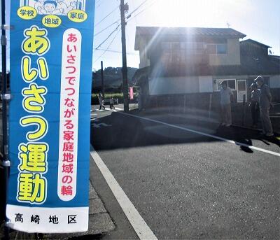 今週、「高崎地区あいさつ運動」がありました。校門付近では、自治公民館長や社会教育関係団体理事の皆様と、5・6年生の子供も参加して、元気なあいさつが聞かれました。早朝より、登校の見守りとあいさつ運動をありがとうございました。