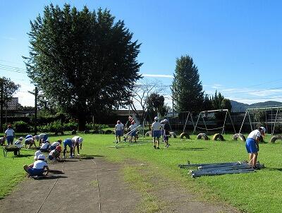 9月6日(水)の1時間目に、4~6年生と先生たちで、運動会に向けて準備作業をしました。練習の時に日よけとなるテントを立てたり、グラウンドの草を取ったりしました。高崎小の子供たちは、みんな一生懸命に働いていました。これから、熱中症に十分気をつけながら、運動会の練習に取り組んでいきます。