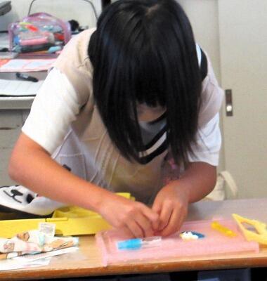 何も撮影できなかったカメラを持ち、2年生教室をのぞくと、図工の時間でした。