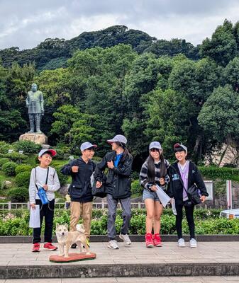 昼食の後は、「班別自主研修」です。照国神社、黎明館、西郷隆盛像、県立博物館、メルヘン館などのチェックポイントをグループごとに巡ります。はりきって出発しました!
