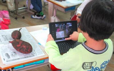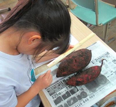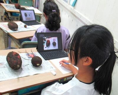 先週、2年生が生活科の学習で育ててきたさつまいもの収穫をしました。みんな嬉しそうに掘っていました。大きなさつまいもがたくさん掘れて、にこにこ笑顔でした。さつまいもの長さを定規で測ったり、タブレットで撮影したりして、しっかりと記録していました。