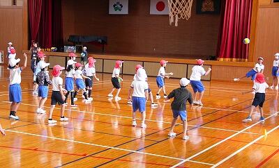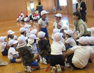 体を動かすことが大好きな1・2年生、元気いっぱい楽しそうに交流していました。