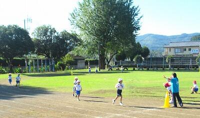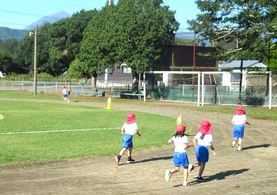 11月に入り、持久走が始まりました。体育の授業では、決められた時間を自分のペースで走ります。1年生が、元気いっぱいに走っていました。