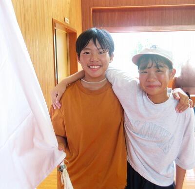 運動場では、6年生や下級生が「最高の思い出をつくってね」の垂れ幕をもって見送っていました。
