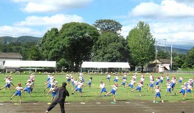 9月24日(火)、秋風にのって運動場から軽快な曲が聞こえてきます。3年生と4年生がダンスの練習をしていました。運動場いっぱいに広がったり、四方に分かれたり、中心に集まったり・・・隊形移動をていねいに練習していました。