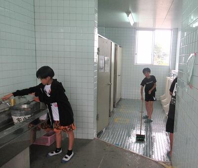 くつばこ掃除も、トイレ掃除も、上級生がリードしながら協力して取り組んでいました。