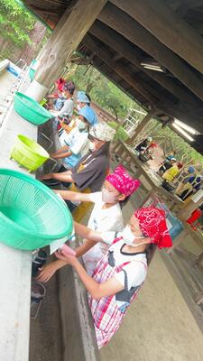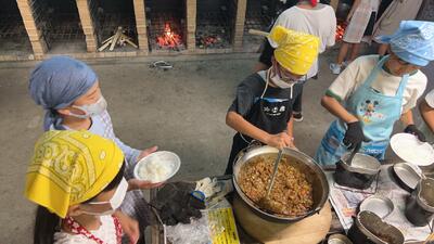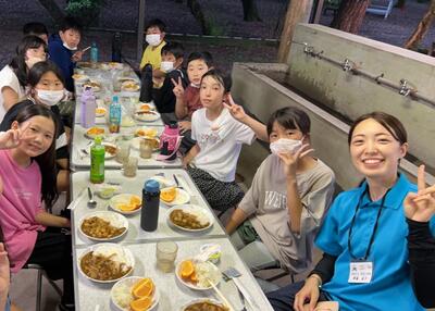 カレーライスができあがったようです!ごはん係、カレー係、かまど係に分かれて頑張って作りました。火をつけるのに苦戦しましたが、みんなで協力して作っていたそうです。みんなで作ったカレーライスは、きっと美味しいでしょう!