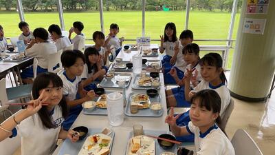 10月4日(金)、宿泊学習2日目がスタート。みんな元気とのことです。朝ごはんを食べています。