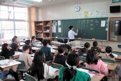 学校では、学力向上を目指して「子どもたちが主役となる学級・授業づくり」に取り組んでいます。明和小学校から指導教諭の下石先生を講師として招き、研修会を行いました。従来の教師による一方的な指導ではなく、子どもが主体的に考え話し合って学びを深めるように、授業のスタイルが変化しています。研修のスタイルも、先生たちが主体的に意見を出し合い、全員がアウトプットして深めるように変えました。先生たちも日々勉強中です。