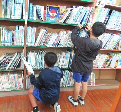 4年生が、学校図書館サポーターの先生から図書館利用の仕方を教えてもらいました。図書館の本の分け方や並べ方を学んだ後に、サポーターの先生から「指定された本をさがす」挑戦状が渡されました。グループごとに、生き物に関する本や昔話、仕事に関する本などがそれぞれどこにあるのかについてゲーム形式で楽しく学習しました。今年度も学校図書館を利用して、調べ学習や読書活動を充実させていきたいです。
