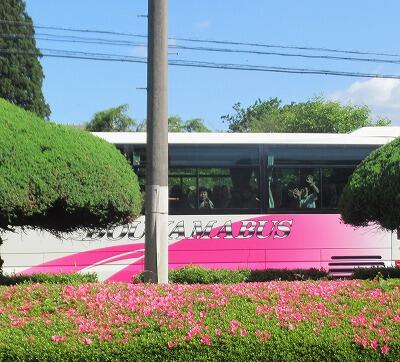 【バスで出発】みんな、これ以上ないほどのニコニコ笑顔で、手をふって出発しました。