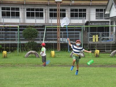 今日の2時間目、運動場をひたすらに駆け回る子供たちの姿を見かけました。遠くから見ていると、何やら棒切れをブンブンと振り回しています。「夏休みが近づき、ついに喜びを爆発させているのかなあ」と思って近づくと・・・・。分かりました。虫取り網を振り回しておりました。それも延々と、その動作を繰り返しています。さすが1年生。粘り強いです。虫も無視できず、必死に逃げ回っておりました。もちろん、この活動は学習中の一場面です。生活科の学習で、自分と身近な動物や植物などの自然とのかかわりに関心をもち,自然のすばらしさに気付き,自然を大切にしたり,自分たちの遊びや生活を工夫したりすることができるようにすることをねらっています。今日、私が目にしたのは1年生がむしとりを通して自然とのかかわり、夏の自然についての気づきなど、いろいろなことを学んでいたのです。