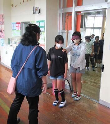 【アイマスクを着けて歩行体験】