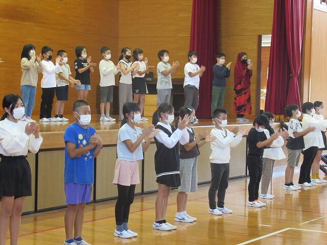 今日の昼の活動は発表集会でした。発表は4年生です。