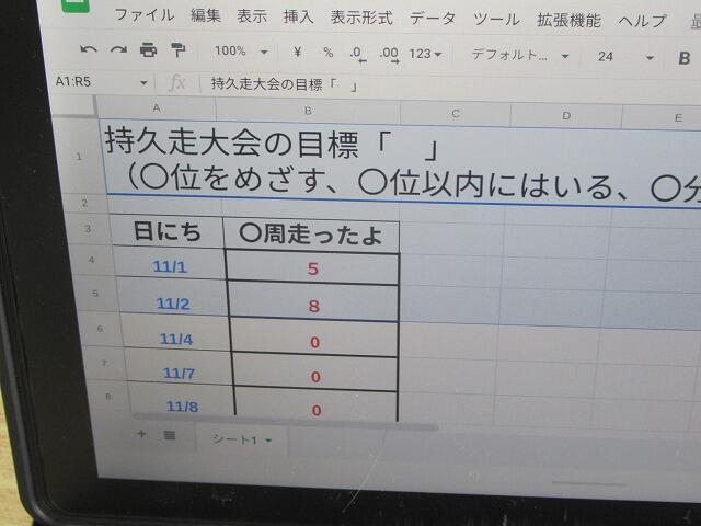 今日のクイズの正解は、自己記録をタブレットに保存しているところでした。ちなみに持久走大会は25日です。