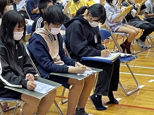 これは各学校の発表を聞きながらメモをしているところです。高崎小は体育館をメイン会場にしました。