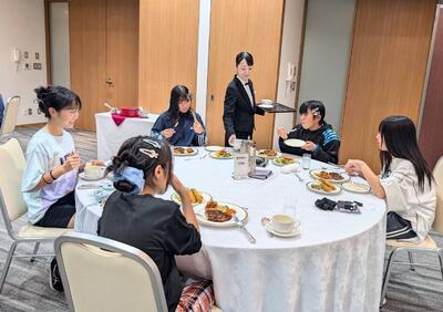 夕食はマナーを教えてもらった後に、ナイフとフォークを使っていただきました。