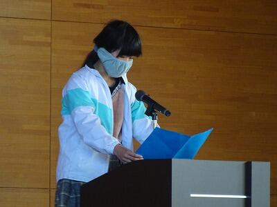さて、1月7日は3学期始業の日でした。今回も2名の代表児童の作文発表から始まりました。まず2年生です。