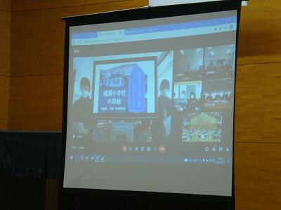 TZミーティングとは、高崎地区の小中学校が一堂に会し、地域が明るく元気になるためにどんな取組を行うのか話し合う場です。本年度は、新型コロナウイルス感染症拡大に伴い、オンラインで実施しました。高崎小は体育館からオンラインに参加しました。