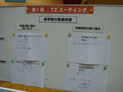 今回のミーティングのテーマは、学校や地域を明るく元気にするための取組です。今回、その方法として各学校であいさつ運動に取り組んできたので、その報告を行いました。