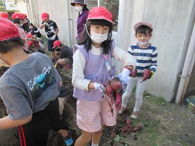 収穫の秋を存分に堪能した1・2年生でした。収穫したイモは大事に大事に家に持ち帰りましたが、きっと食欲の秋も堪能したでしょう。