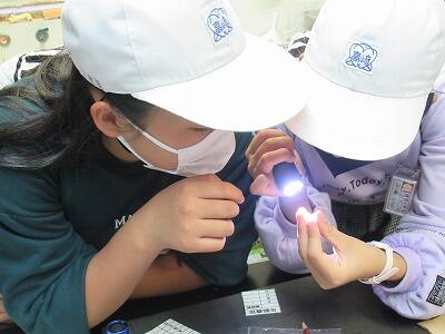 さすが2年生です。下を向いて口の中をグジュグジュと上手に洗口しています。