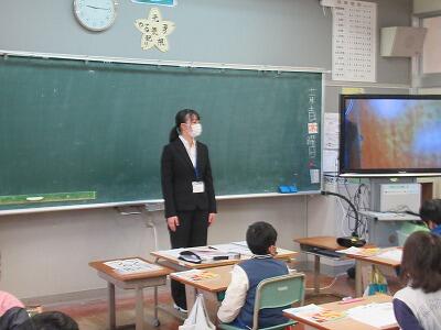 本校では今、教育実習生が来ています。大学3年の福島さんです。高崎地区の出身でとっても明るく礼儀正しい学生さんです。ちなみに、教育実習とは、教員を目指す学生さんが教職員免許状の授与を受けるために修得する単位のことで、実際に授業等の実践的な活動を行うものです。