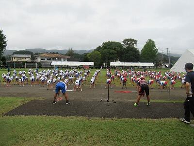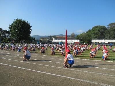 5月から10月下旬へと延期になっていた運動会まで2週間あまり。各学級や学年での練習は順調に進んでいますが、今日は初めての全体練習が実施されました。