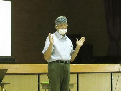 語り部の方です。子供たちからの質問事項を事前にお知らせして、その質問に答える形でお話をしていただきました。