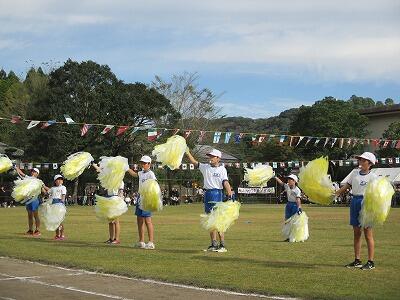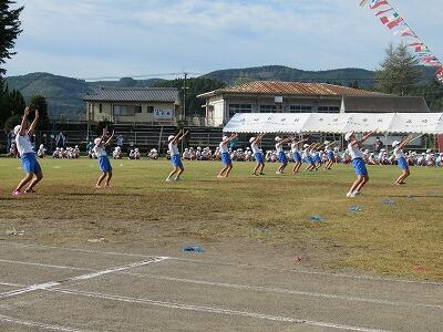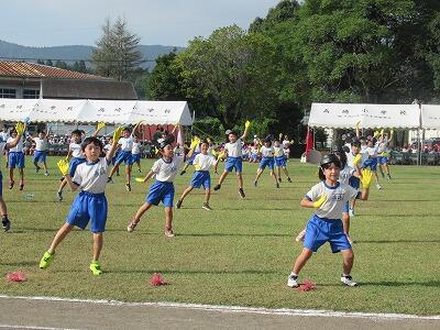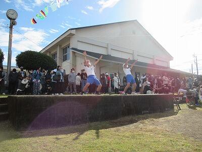 低学年のダンスの様子です。さあ飛び上がるぞという瞬間をとらえました。元気一杯のダンスです。