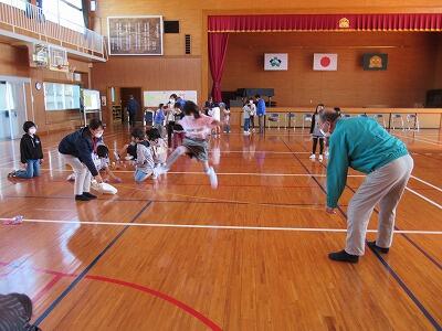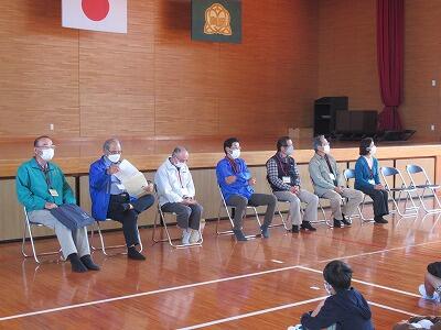 次は体育館で昔の遊びを教えていただきました。昔の遊び達人の皆様です。7名、ご来校いただきました。