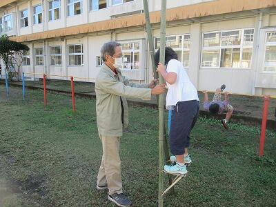 そしてこの学習の一つとして昨日、地域の方を招いて「昔の様子について語っていただく」「昔の遊びを教えてもらう」学習を行いました。