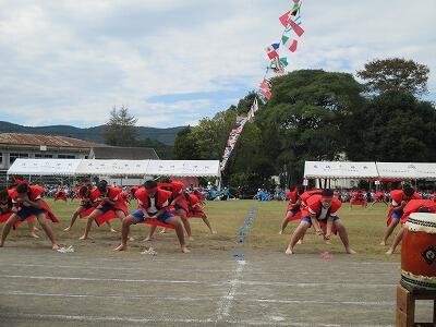 高学年の表現「ソーラン節」です。地面をしっかり踏みしめ、力強い舞を披露しました!さすが高学年、迫力満点の発表でした!