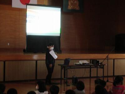 簑部先生は、たちばな天文台の立ち上げから携わられており、ここ高崎町が日本一星がきれいな街として5年連続でえらばれたことや、ふだん天文台でされているお仕事のことなどを説明していただきました。子供たちも日本一ということに驚いていました。