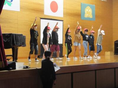 中学年はビルボード1位を獲得した曲「ダイナマイト」でノリノリのダンスを披露しました。写真は最後の決めポーズです。とても華やかな踊りにみんなうっとりでしたよ!