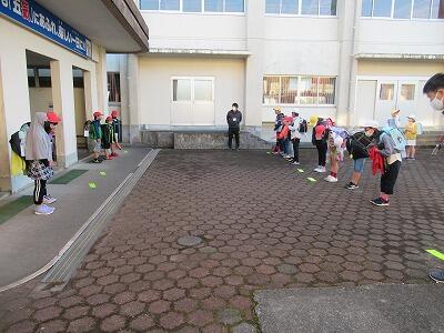 このように登校後、児童玄関前で班同士であいさつをするというものです。あいさつが終わったら、次に登校してくる班の人とあいさつをします。このように、あいさつのバトンをつないでいくというものです。