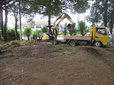 9月5日(日)の朝8時からPTA役員さんに学校の環境整備のため、一苦労いや、大仕事をしていただきました。前回、このブログでも紹介した草刈りですが、刈った草を置く場所が山のようになっていたのです。山を切り崩し、草置き場として改善していただきました。