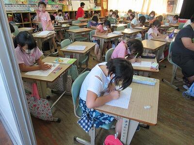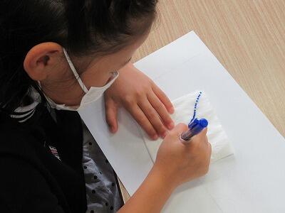 2組さんは先生がお休みだったので、書き方(文字の練習)に一生懸命取り組んでいました。一つ一つの文字を丁寧に書いていましたよ。集中して取り組む習慣がついてきています。お見事!