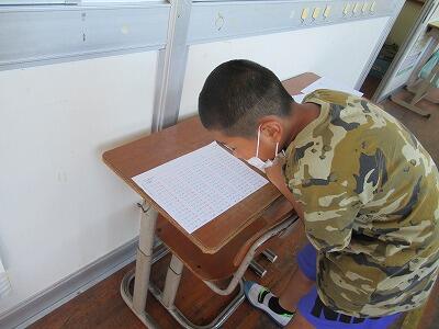 廊下に設置された解答確認机で〇付けをしています。こんな風に、全員一斉ではなく、自分のペースでできるので、一人一人が目標をしっかりもって頑張っていました。