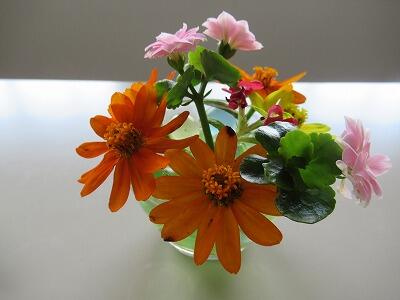 このきれいに咲く花を花だんだけに留めるのはもったいないと、玄関などに花を生けています。どうですか?きれいでしょう。