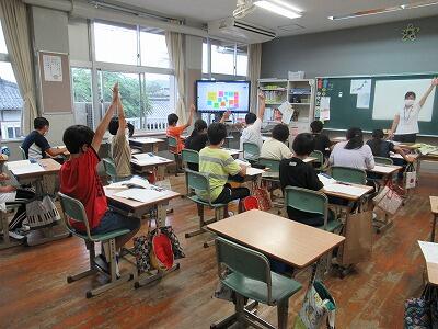 本日は4年生の様子でしたがいかがでしたか。いつも元気な4年生ですが、学習中の集中力は素晴らしいです。さあ来週は5年生です。5年生も38名一クラスの大人数クラスです。お楽しみに!