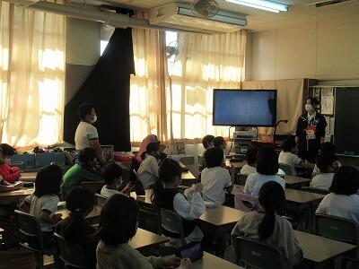 11日(木)の3校時、3年生教室に都城警察署の方が来られました!「えっ」と驚かれましたか?大丈夫です。子供たちの学習のお手伝いに来ていただいたのです。最初に校長室でお話をしましたが、なぜか背筋がピーンと伸びてきます。(何も悪いことはしていません)