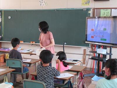 本校では、心や体の健康についての学習を行う際、担任の先生と保健室の先生の2人で指導することがあります。これをティームティーチングと言います。本日は4年生が歯の学習を行っていました。保健の先生自作のプレゼンテーションや歯の模型を使った説明はとても分かりやすく、子供たちも集中して学習していました。歯は健康を保つための大切なものです。大事に大事にしていきたいですね。むし歯を防ぐとともに、もしむし歯がある場合は早めの治療をお願いします。