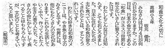 たまたまですが12月4日は私の母の誕生日でした。まさか和食に関する日とは!世界に誇る和の文化、大切にしたいですね。