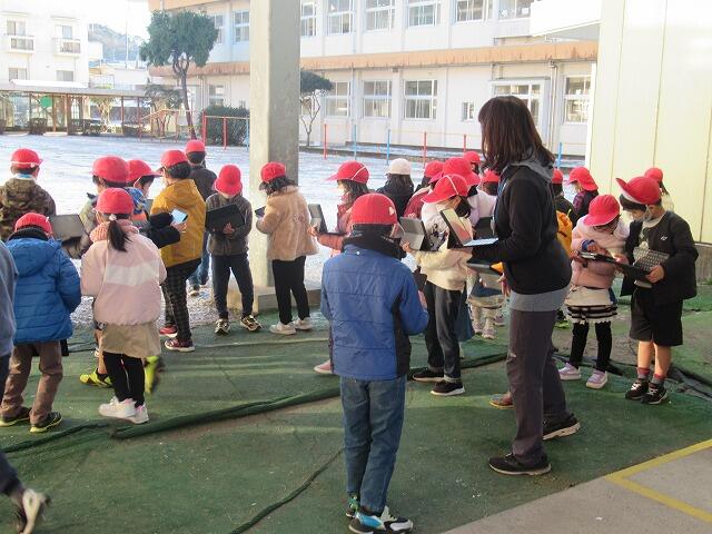 1年生は雪遊びをして、タブレットにも雪景色を記録として残しました。記憶と記録ですね。