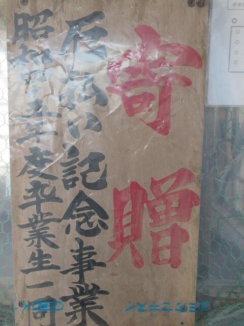 昭和45年卒業生が寄贈していただいた物に取り付けられてい看板です。では、何を寄贈いただいたのか?