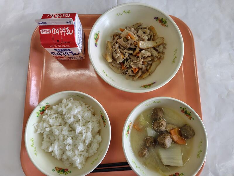 ごはん あじのつみれ汁 れんこんのきんぴら 牛乳